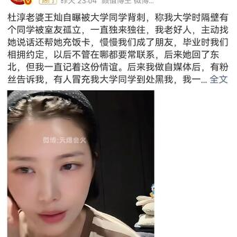 3月27日深夜,杜淳的老婆王灿,连夜冲上了热搜。原因是她不再忍了,而是摊开对大家说明白了,自己被大学同学背刺一事,字里行间满是愤怒。